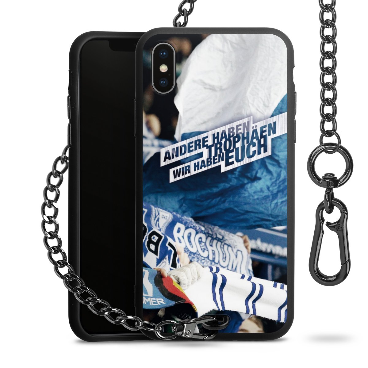 Die mattschwarze Silikon-Handyhülle besteht aus robustem TPU (thermoplastisches Polyurethan). Sie ist flexibel und schützt Dein Smartphone vor Stößen und Kratzern. Die Kette sowie der Karabinerhaken sind aus Metall in Gunmetal-Optik gefertigt. Für dieses Produkt kommen ausschließlich TÜV-geprüfte Materialien zum Einsatz.
