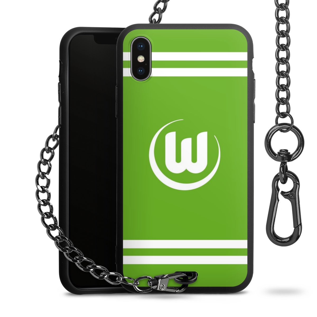 Die mattschwarze Silikon-Handyhülle besteht aus robustem TPU (thermoplastisches Polyurethan). Sie ist flexibel und schützt Dein Smartphone vor Stößen und Kratzern. Die Kette sowie der Karabinerhaken sind aus Metall in Gunmetal-Optik gefertigt. Für dieses Produkt kommen ausschließlich TÜV-geprüfte Materialien zum Einsatz.
