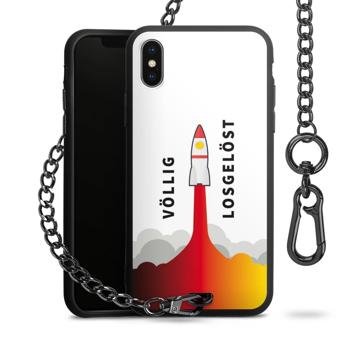Die mattschwarze Silikon-Handyhülle besteht aus robustem TPU (thermoplastisches Polyurethan). Sie ist flexibel und schützt Dein Smartphone vor Stößen und Kratzern. Die Kette sowie der Karabinerhaken sind aus Metall in Gunmetal-Optik gefertigt. Für dieses Produkt kommen ausschließlich TÜV-geprüfte Materialien zum Einsatz.