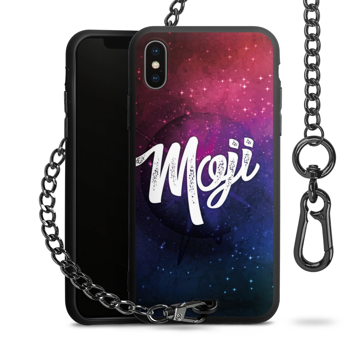 • Mattschwarze Handyhülle mit Metallkette