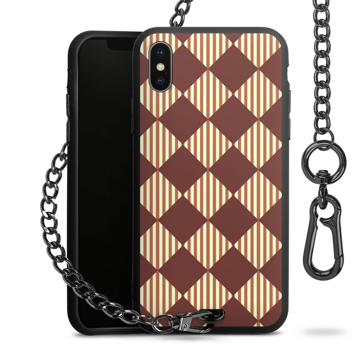 - Mattschwarze Handyhülle mit Metallkette