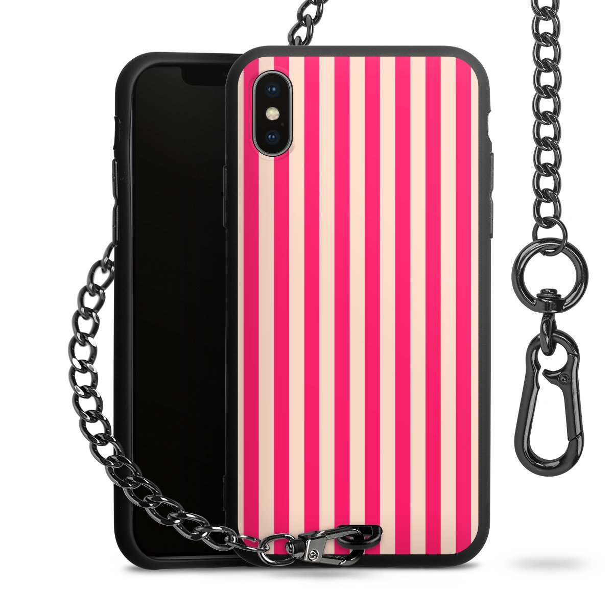 - Mattschwarze Handyhülle mit Metallkette