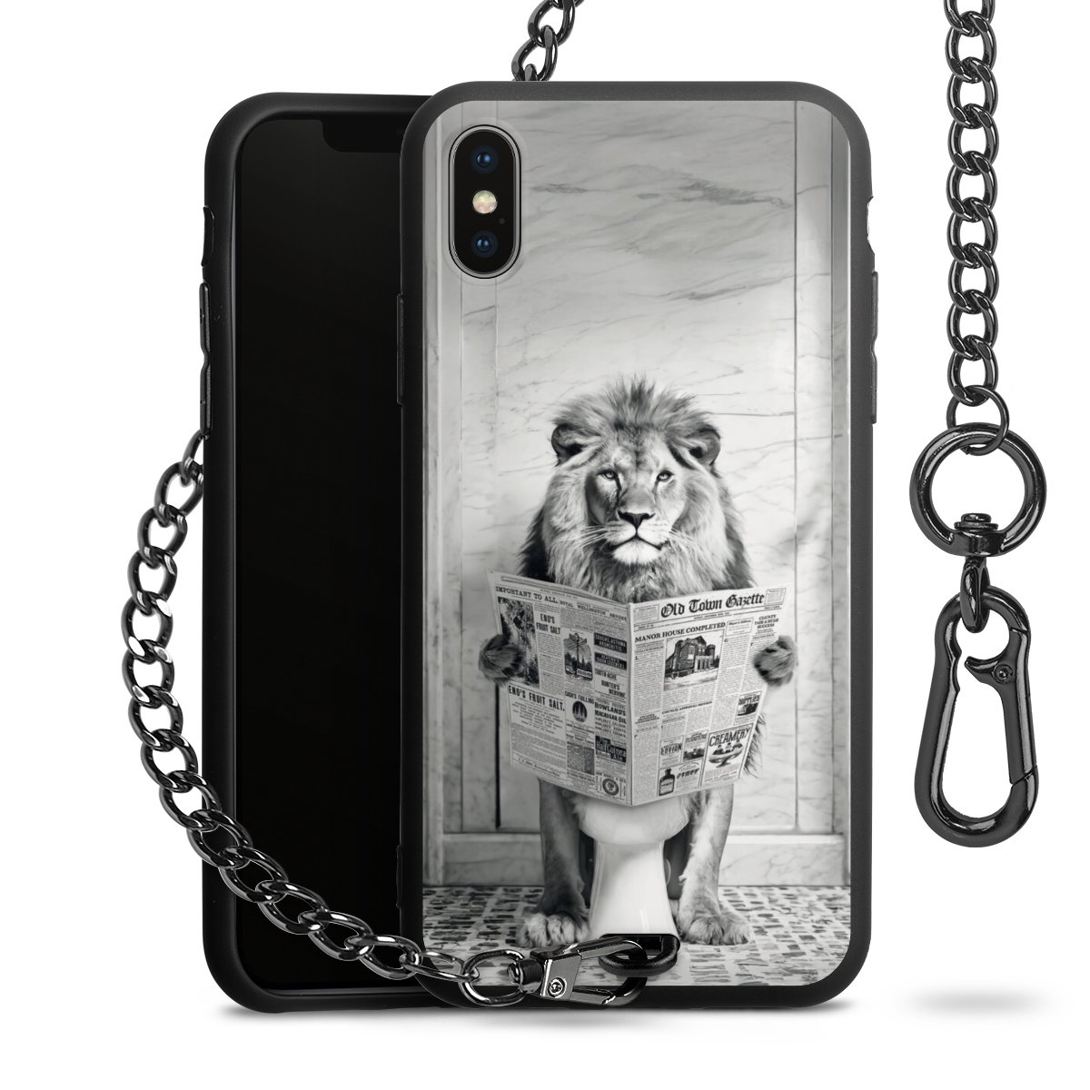 Die mattschwarze Silikon-Handyhülle besteht aus robustem TPU (thermoplastisches Polyurethan). Sie ist flexibel und schützt Dein Smartphone vor Stößen und Kratzern. Die Kette sowie der Karabinerhaken sind aus Metall in Gunmetal-Optik gefertigt. Für dieses Produkt kommen ausschließlich TÜV-geprüfte Materialien zum Einsatz.
