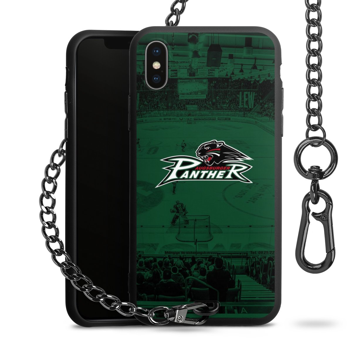 Die mattschwarze Silikon-Handyhülle besteht aus robustem TPU (thermoplastisches Polyurethan). Sie ist flexibel und schützt Dein Smartphone vor Stößen und Kratzern. Die Kette sowie der Karabinerhaken sind aus Metall in Gunmetal-Optik gefertigt. Für dieses Produkt kommen ausschließlich TÜV-geprüfte Materialien zum Einsatz.