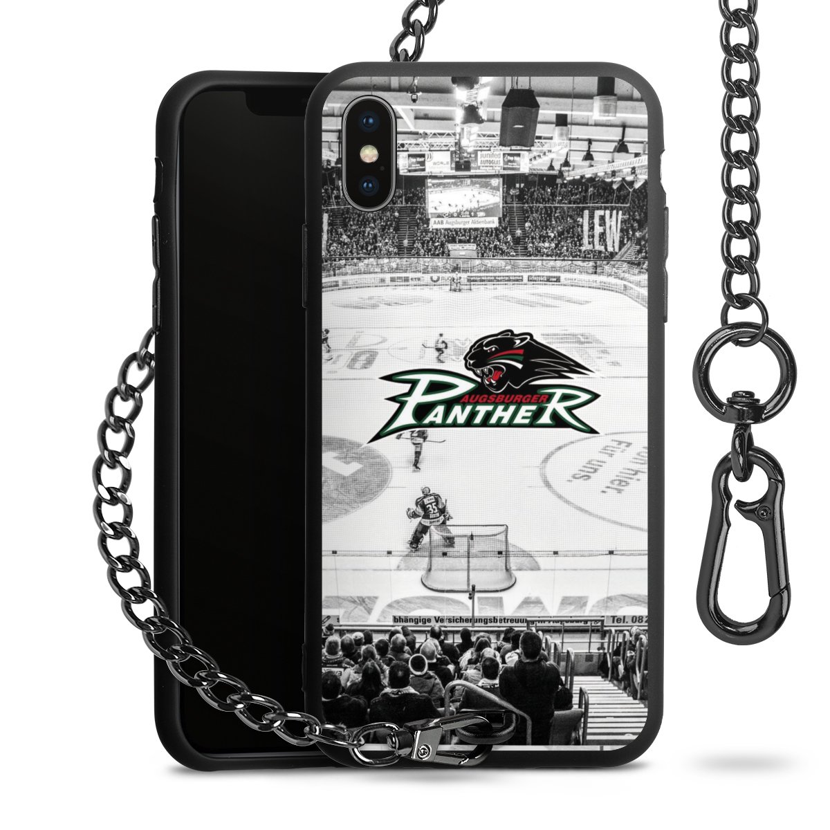 • Mattschwarze Handyhülle mit Metallkette