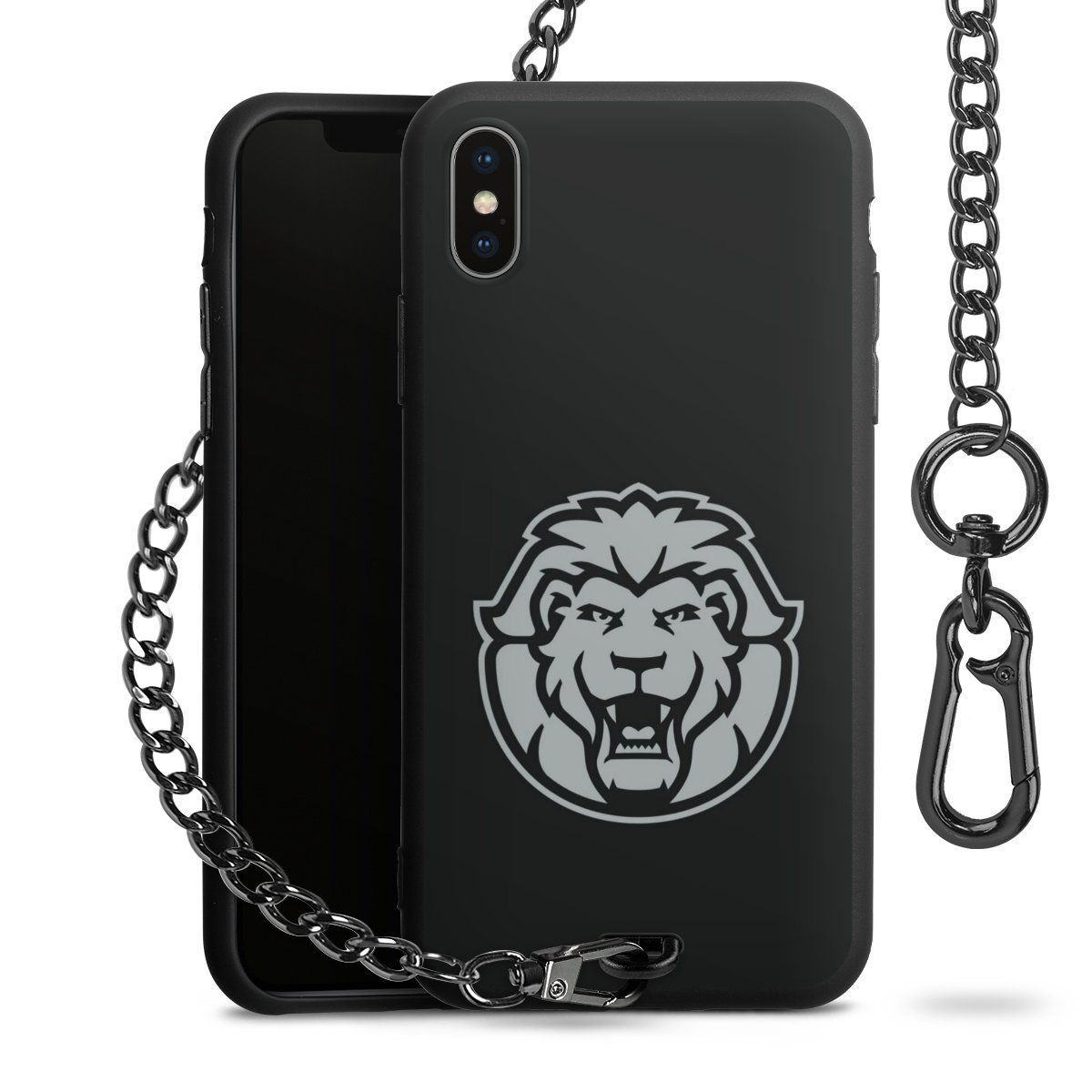 - Mattschwarze Handyhülle mit Metallkette