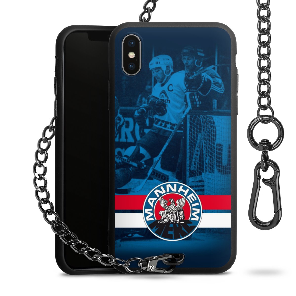 • Mattschwarze Handyhülle mit Metallkette