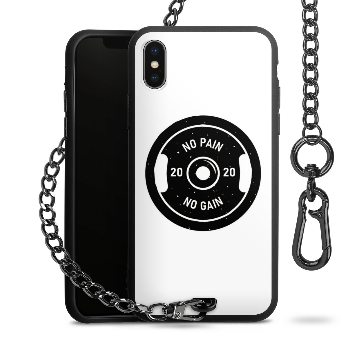 Die mattschwarze Silikon-Handyhülle besteht aus robustem TPU (thermoplastisches Polyurethan). Sie ist flexibel und schützt Dein Smartphone vor Stößen und Kratzern. Die Kette sowie der Karabinerhaken sind aus Metall in Gunmetal-Optik gefertigt. Für dieses Produkt kommen ausschließlich TÜV-geprüfte Materialien zum Einsatz.
