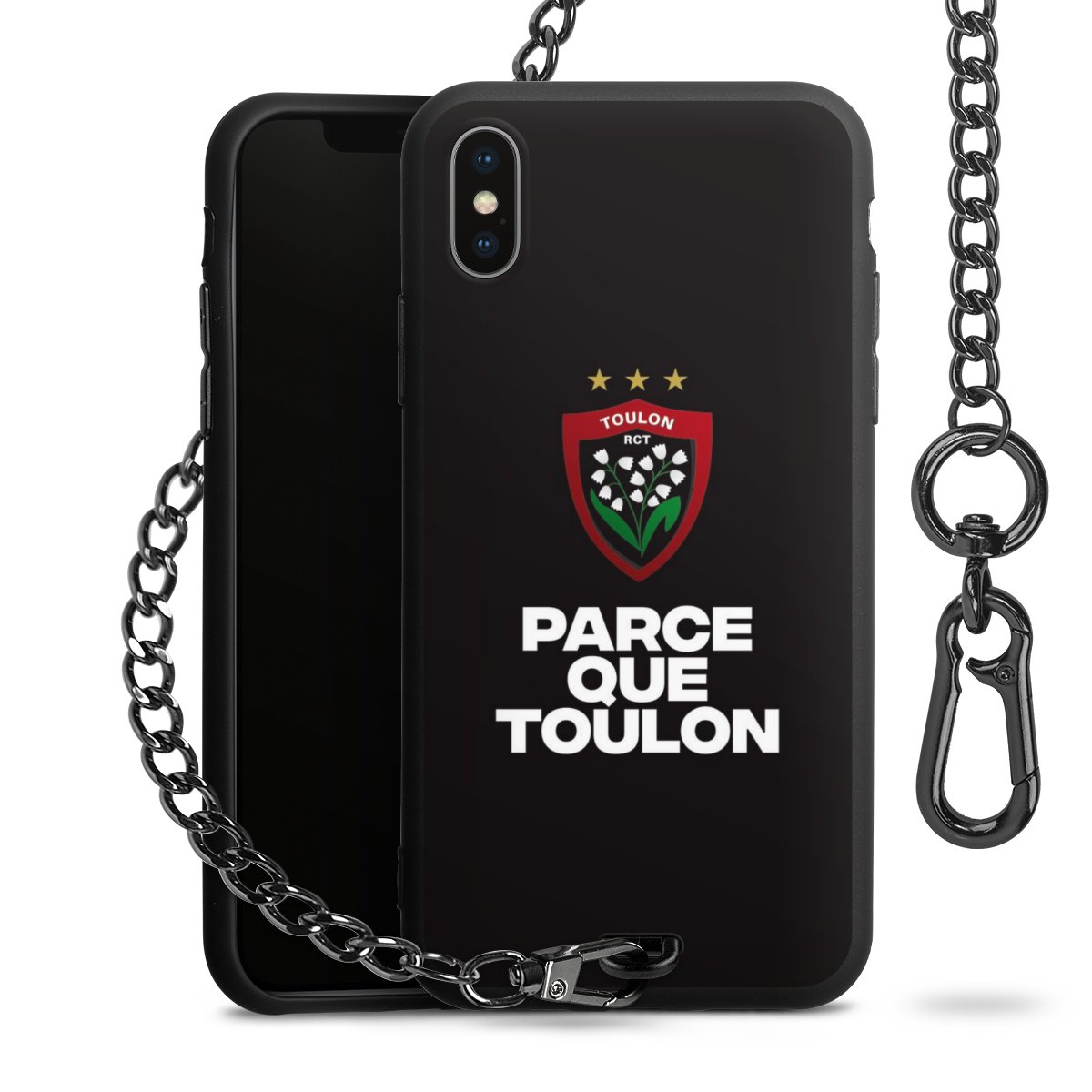 - Mattschwarze Handyhülle mit Metallkette