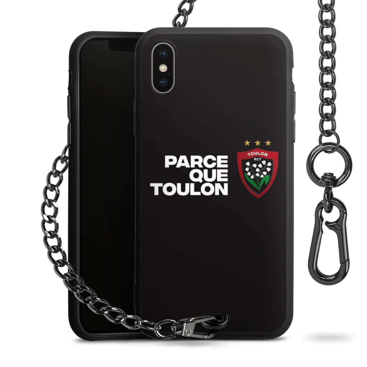 - Mattschwarze Handyhülle mit Metallkette
