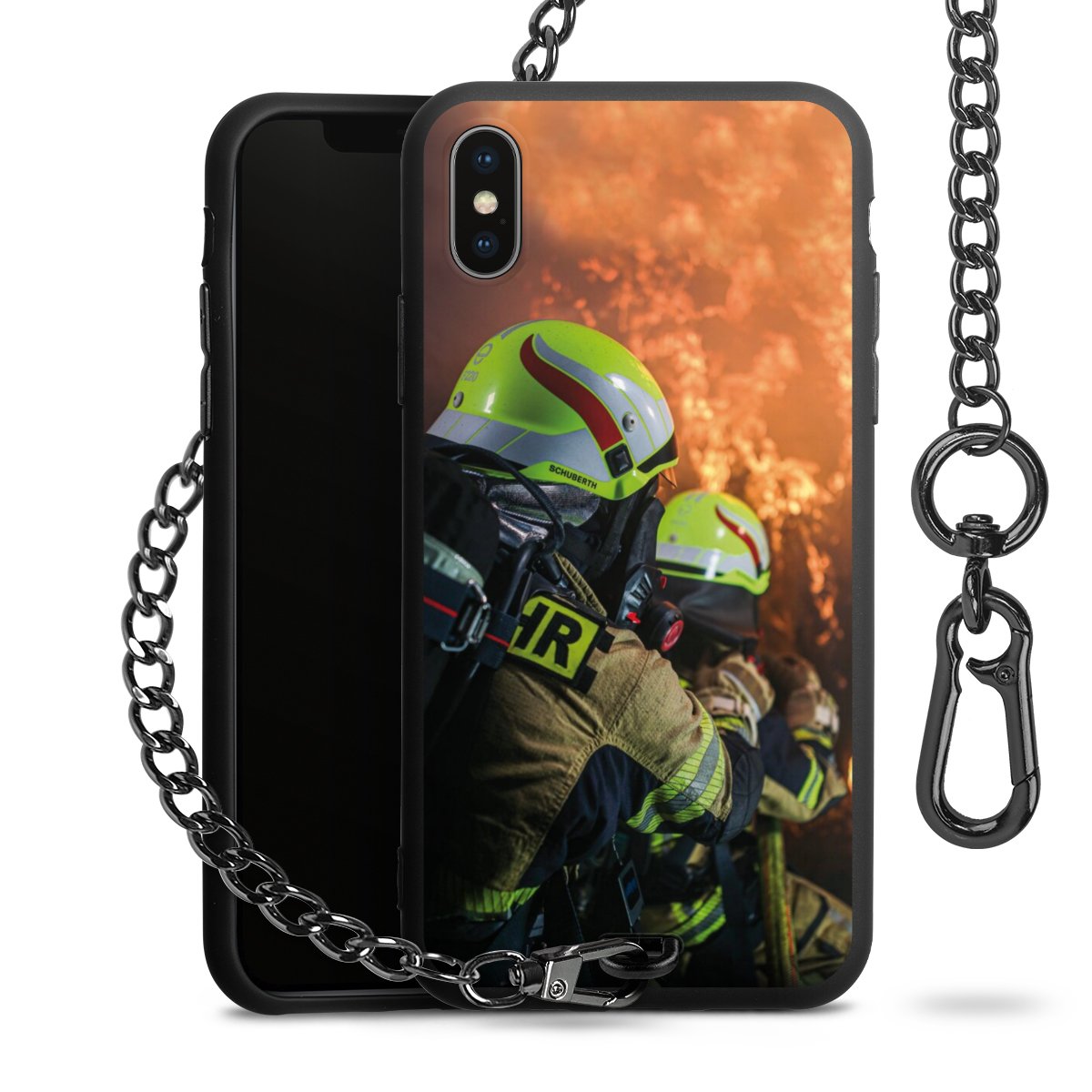 • Mattschwarze Handyhülle mit Metallkette
