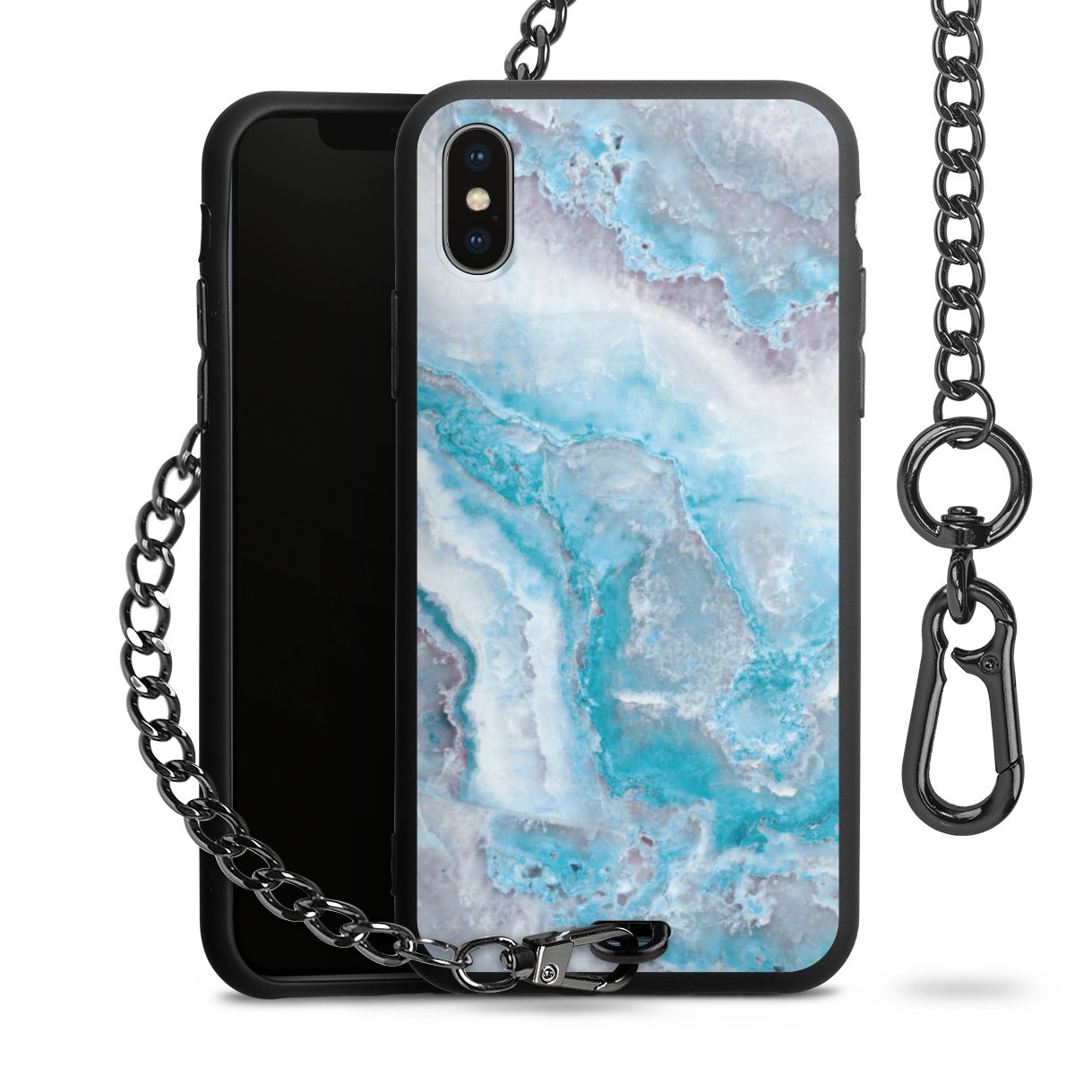• Mattschwarze Handyhülle mit Metallkette