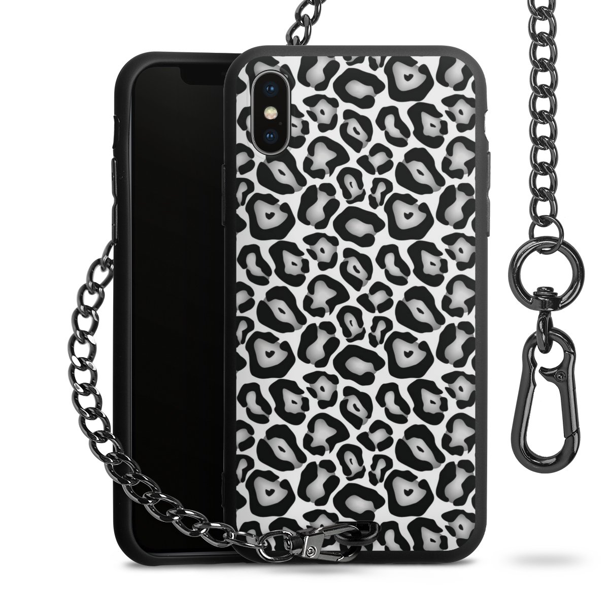 - Mattschwarze Handyhülle mit Metallkette