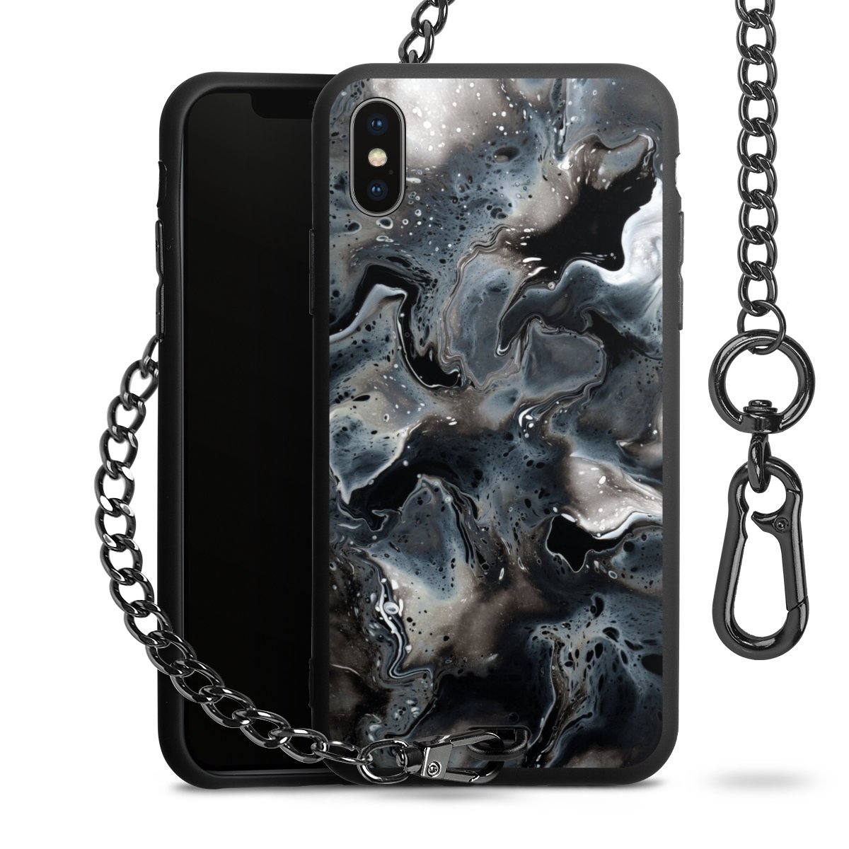 • Mattschwarze Handyhülle mit Metallkette