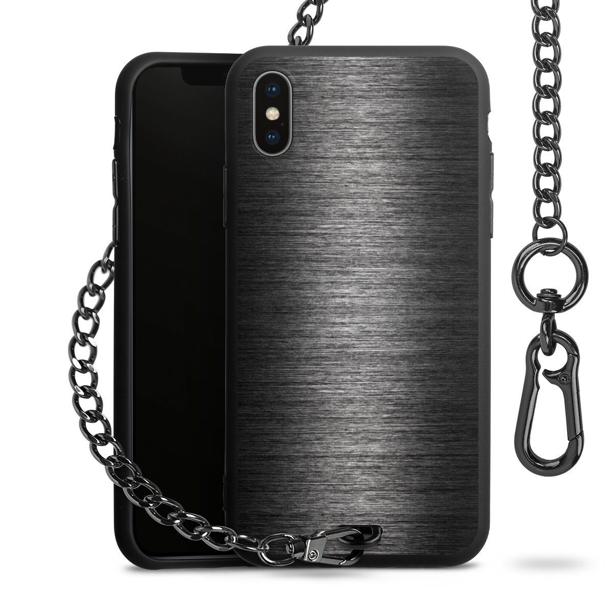 - Mattschwarze Handyhülle mit Metallkette