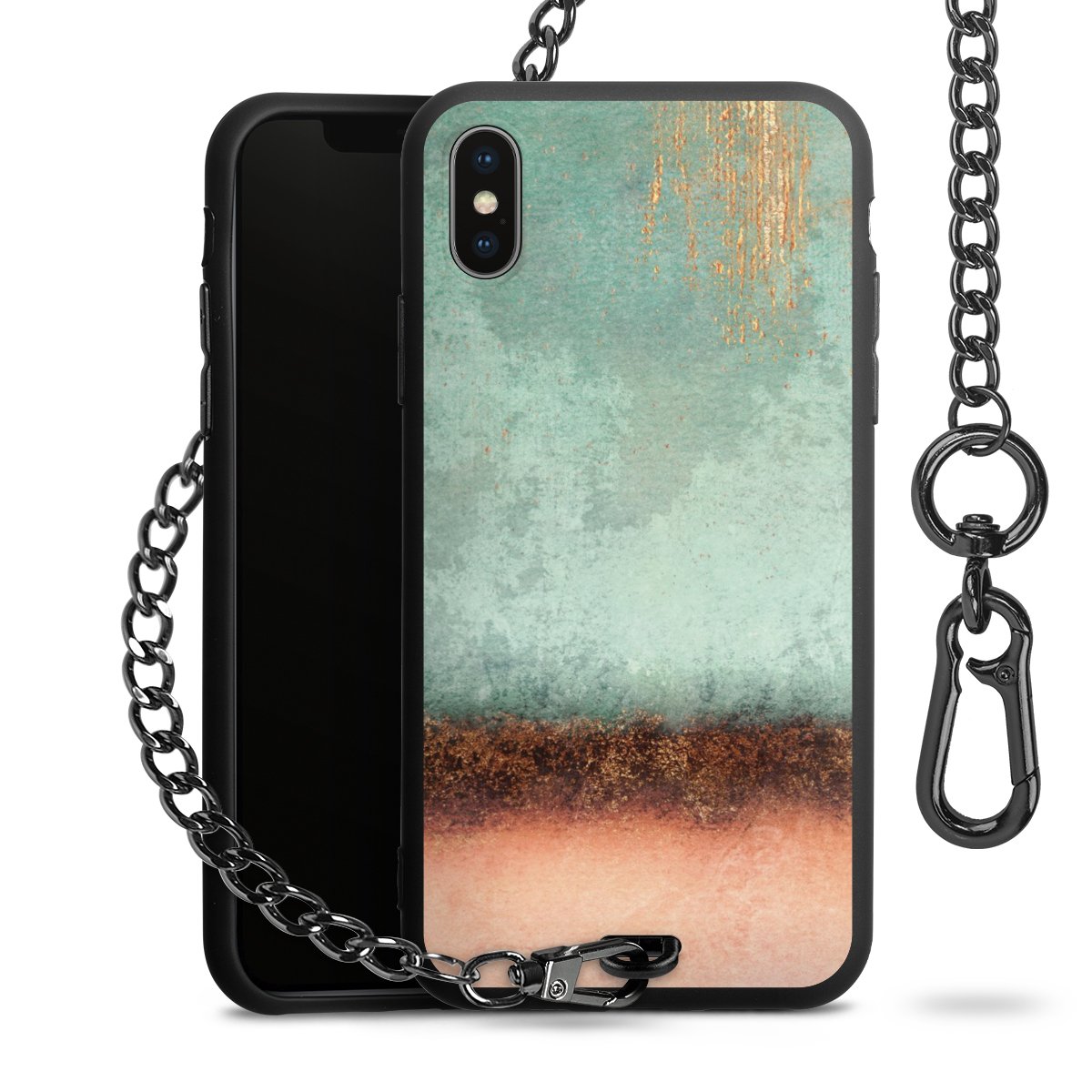• Mattschwarze Handyhülle mit Metallkette