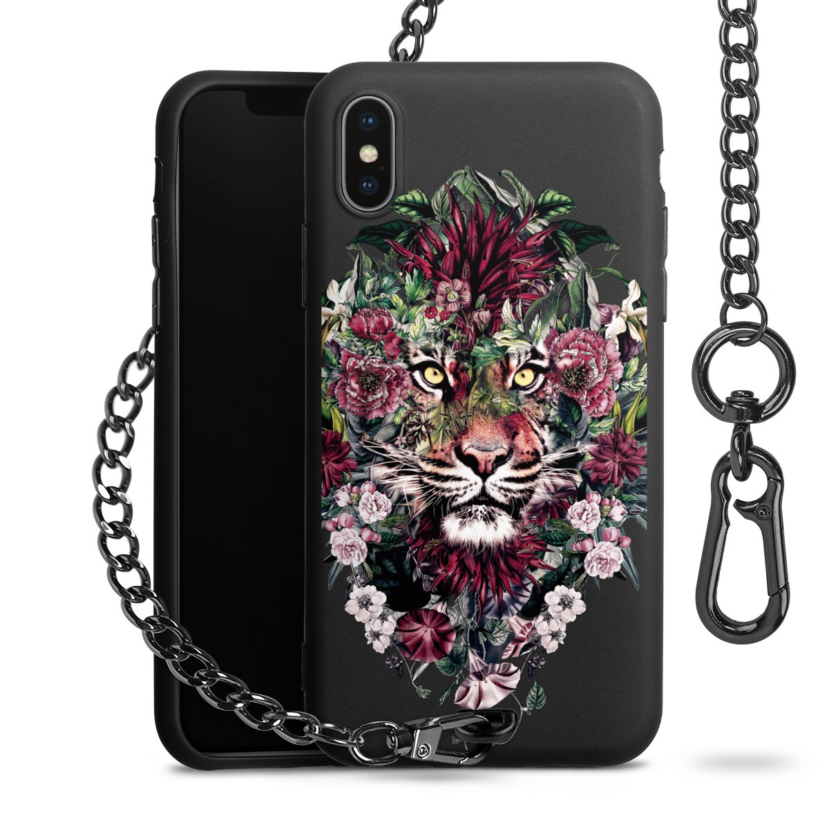 Die mattschwarze Silikon-Handyhülle besteht aus robustem TPU (thermoplastisches Polyurethan). Sie ist flexibel und schützt Dein Smartphone vor Stößen und Kratzern. Die Kette sowie der Karabinerhaken sind aus Metall in Gunmetal-Optik gefertigt. Für dieses Produkt kommen ausschließlich TÜV-geprüfte Materialien zum Einsatz.
