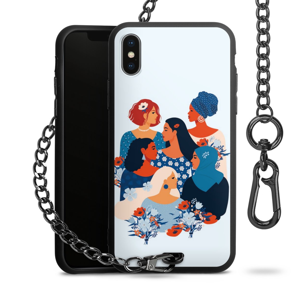 - Mattschwarze Handyhülle mit Metallkette