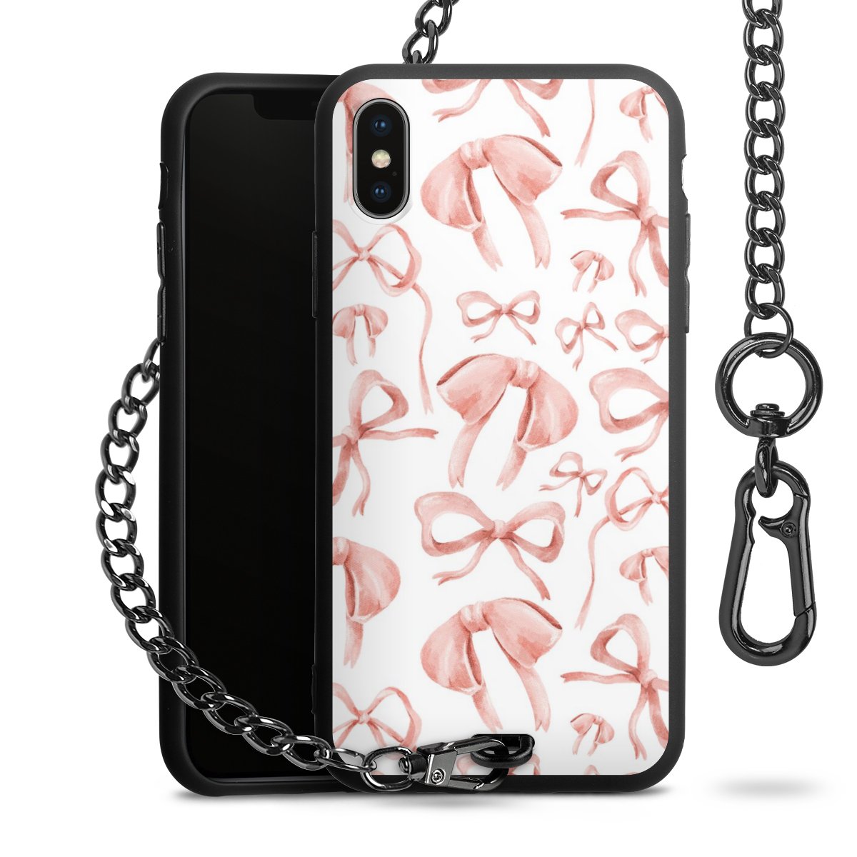 • Mattschwarze Handyhülle mit Metallkette
