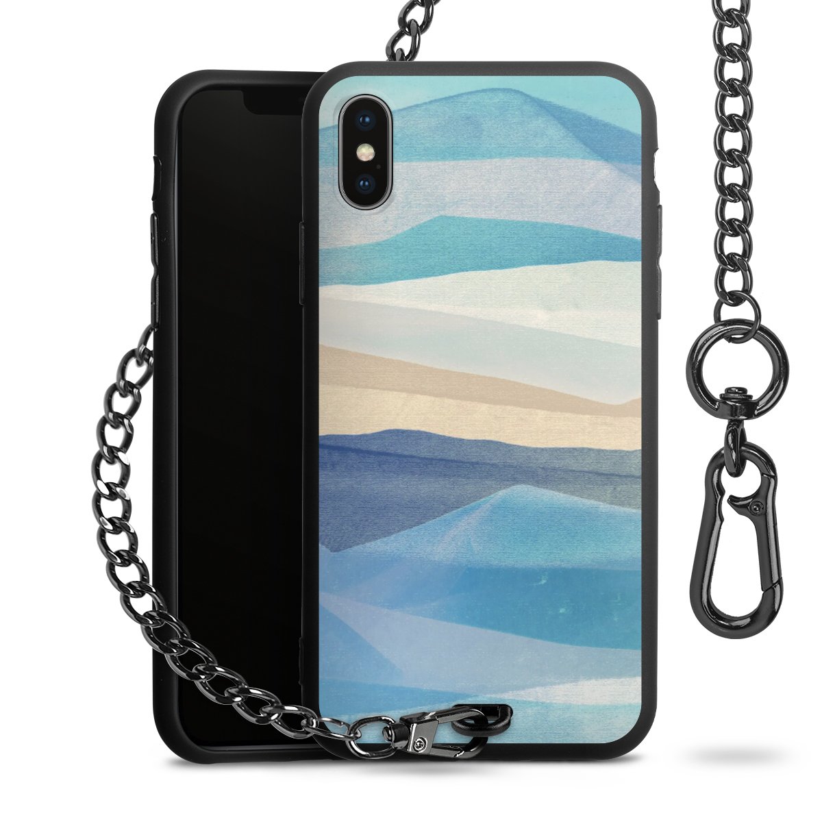 • Mattschwarze Handyhülle mit Metallkette