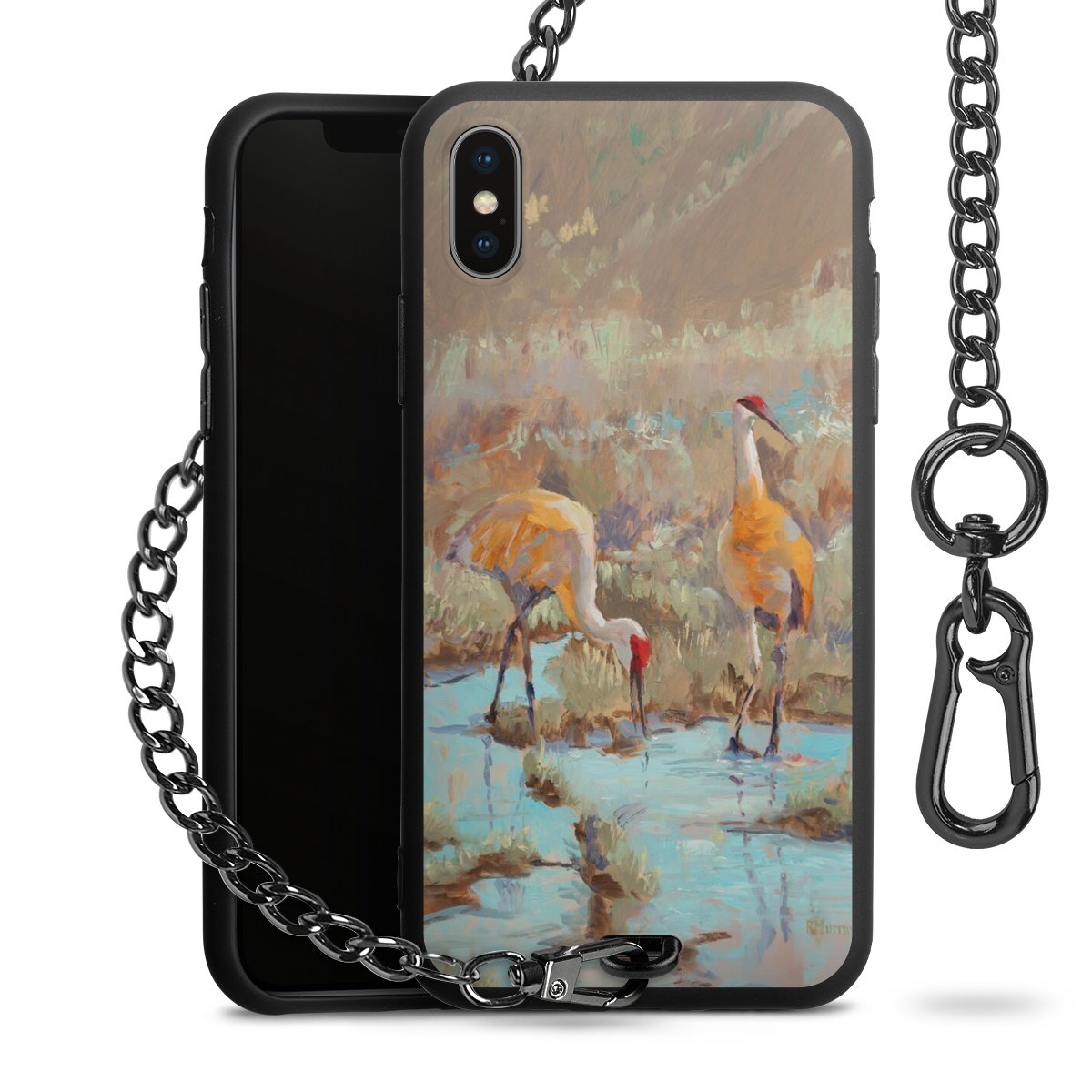 - Mattschwarze Handyhülle mit Metallkette