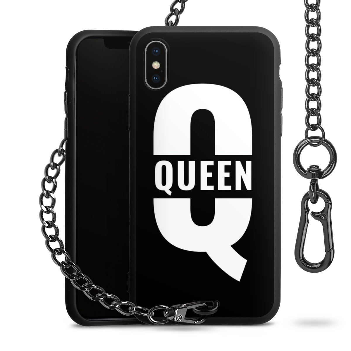 - Mattschwarze Handyhülle mit Metallkette