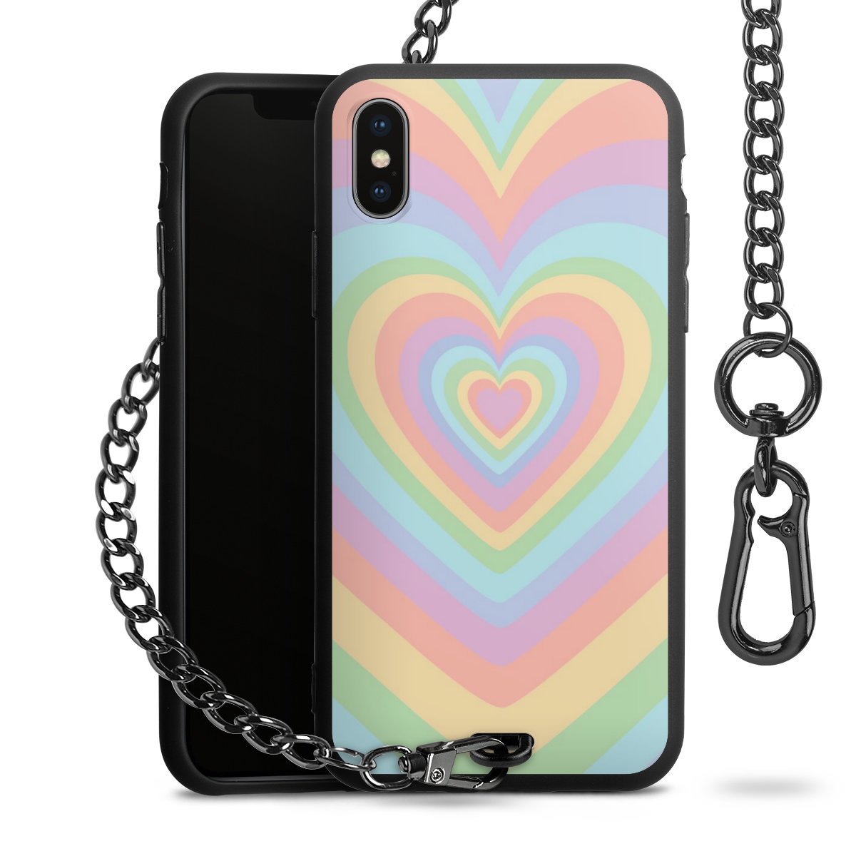 • Mattschwarze Handyhülle mit Metallkette