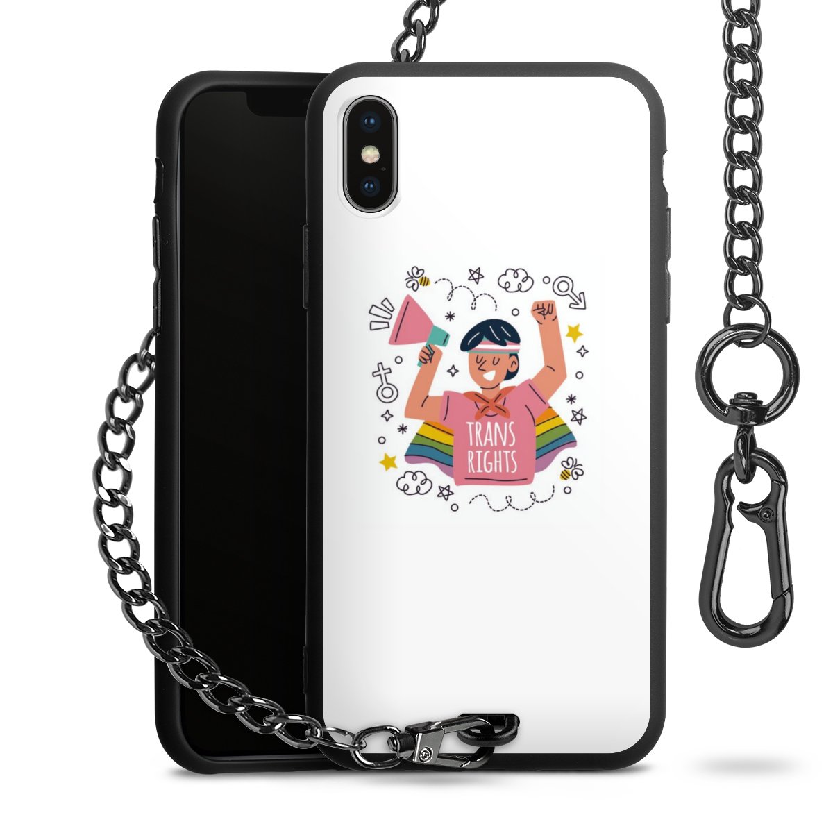Die mattschwarze Silikon-Handyhülle besteht aus robustem TPU (thermoplastisches Polyurethan). Sie ist flexibel und schützt Dein Smartphone vor Stößen und Kratzern. Die Kette sowie der Karabinerhaken sind aus Metall in Gunmetal-Optik gefertigt. Für dieses Produkt kommen ausschließlich TÜV-geprüfte Materialien zum Einsatz.