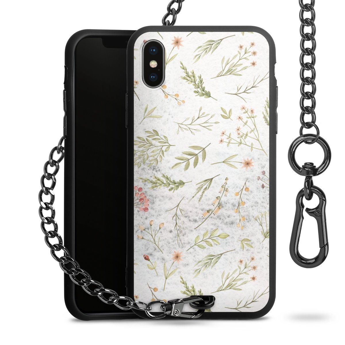 - Mattschwarze Handyhülle mit Metallkette