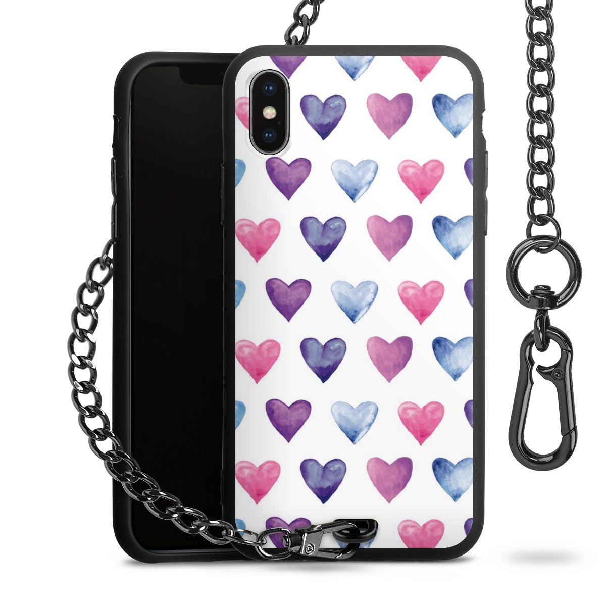 - Mattschwarze Handyhülle mit Metallkette