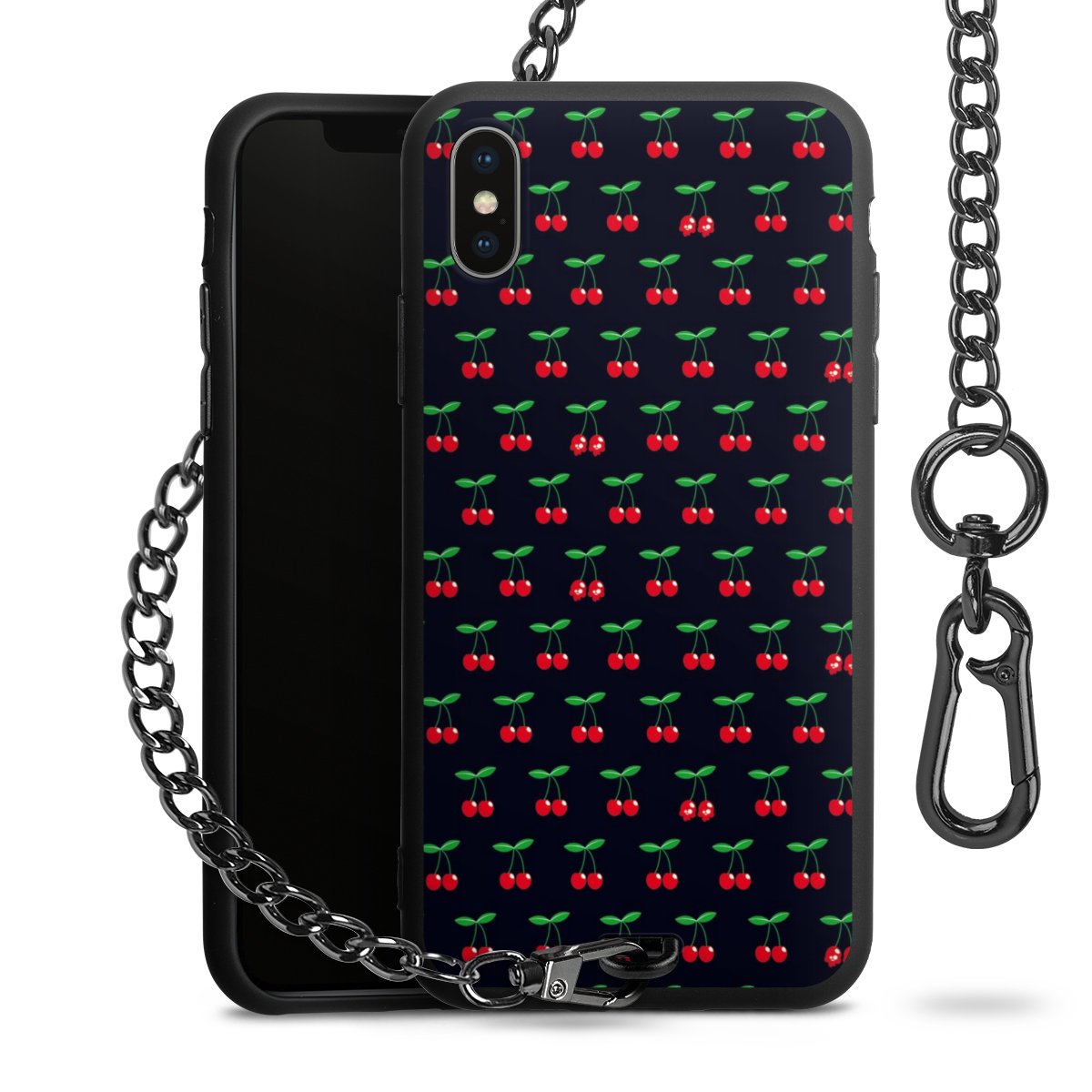 - Mattschwarze Handyhülle mit Metallkette