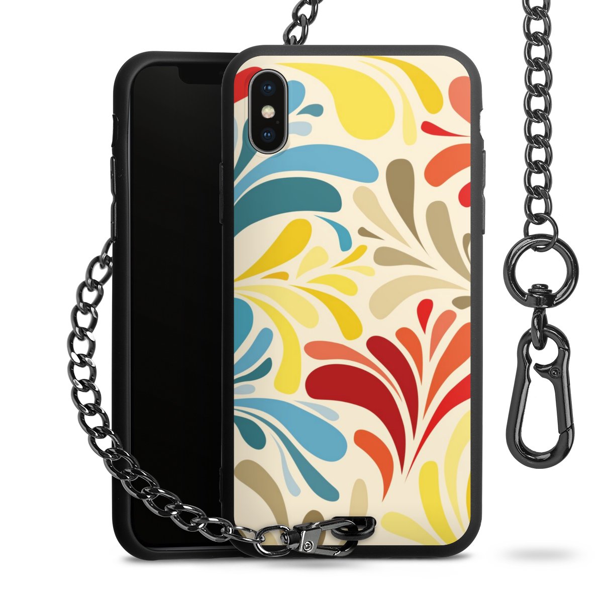 - Mattschwarze Handyhülle mit Metallkette