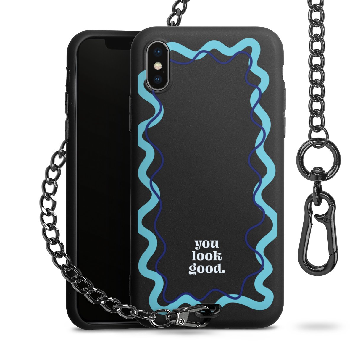 Die mattschwarze Silikon-Handyhülle besteht aus robustem TPU (thermoplastisches Polyurethan). Sie ist flexibel und schützt Dein Smartphone vor Stößen und Kratzern. Die Kette sowie der Karabinerhaken sind aus Metall in Gunmetal-Optik gefertigt. Für dieses Produkt kommen ausschließlich TÜV-geprüfte Materialien zum Einsatz.