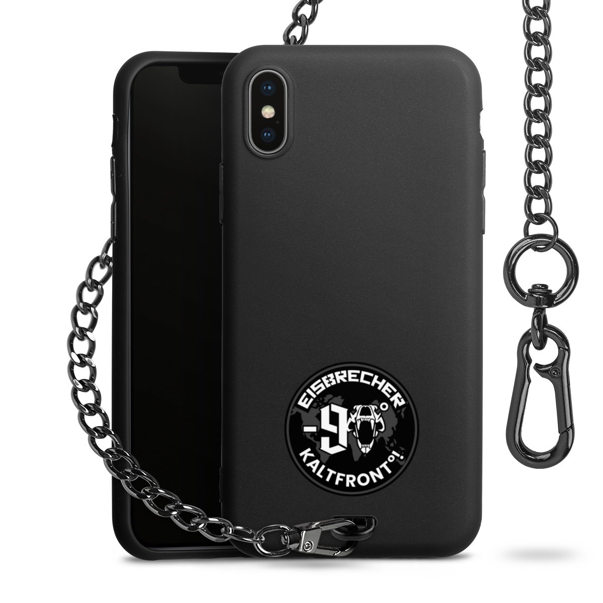 • Mattschwarze Handyhülle mit Metallkette