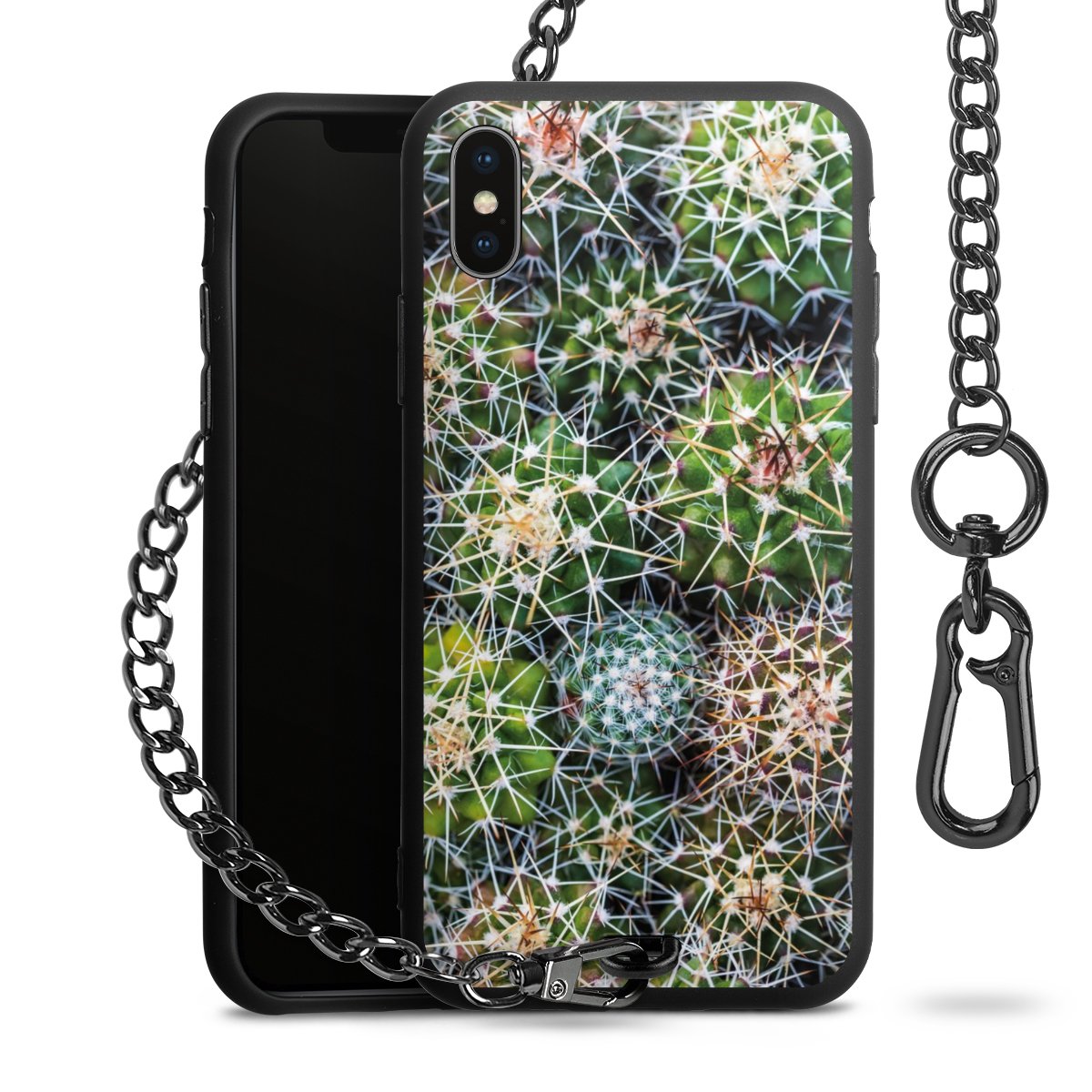 - Mattschwarze Handyhülle mit Metallkette