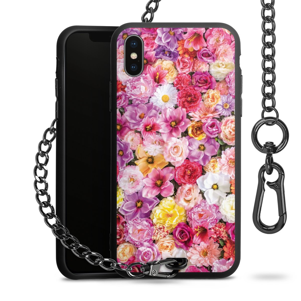 - Mattschwarze Handyhülle mit Metallkette