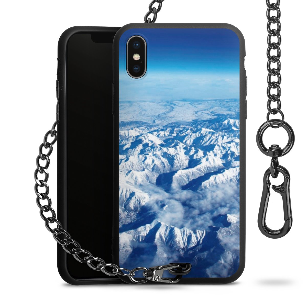 - Mattschwarze Handyhülle mit Metallkette