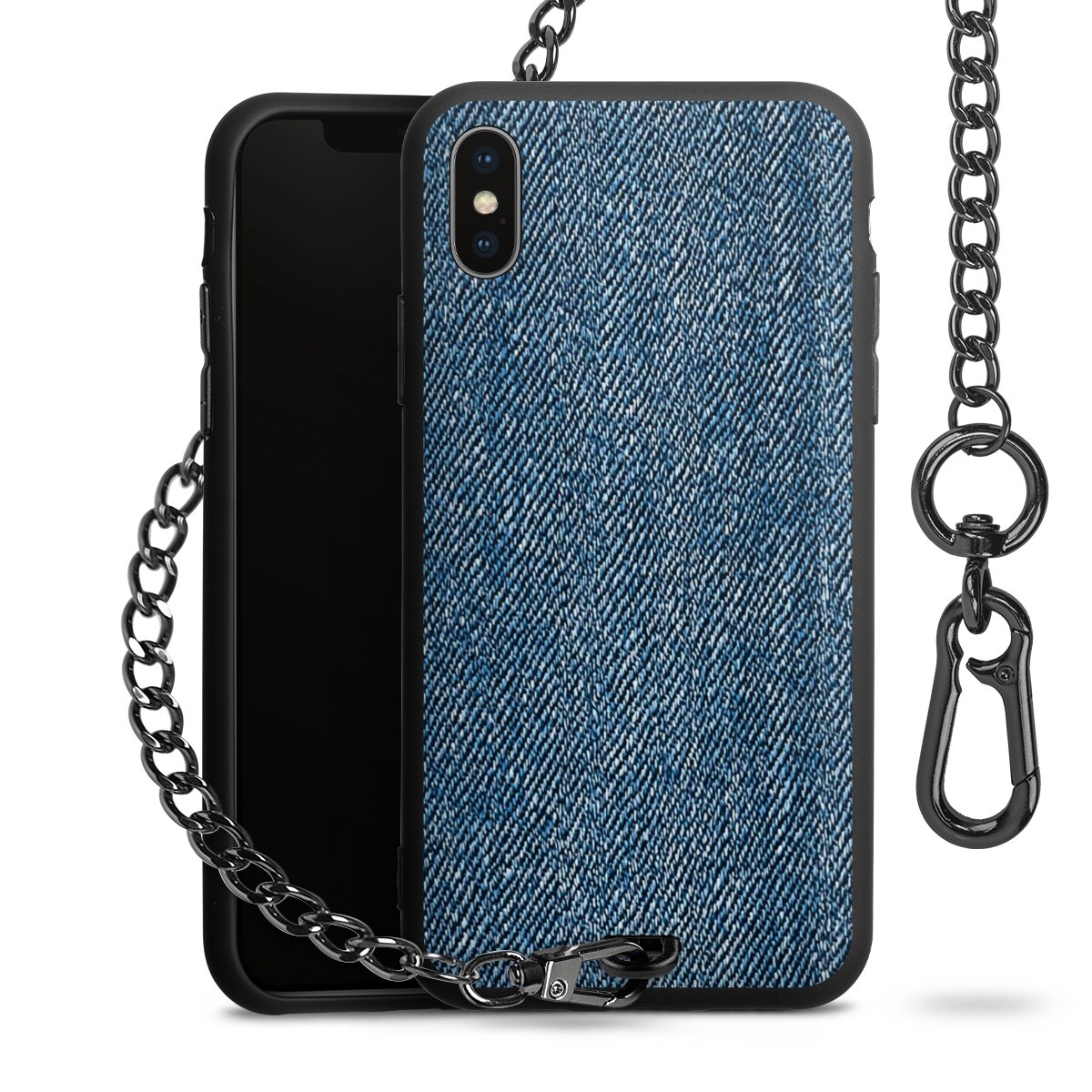 • Mattschwarze Handyhülle mit Metallkette
