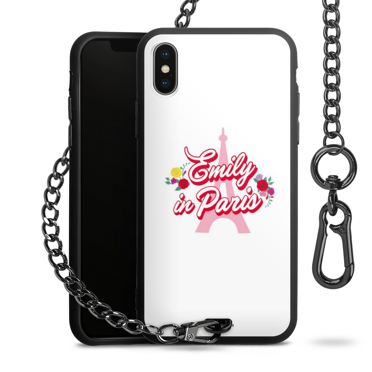 - Mattschwarze Handyhülle mit Metallkette
