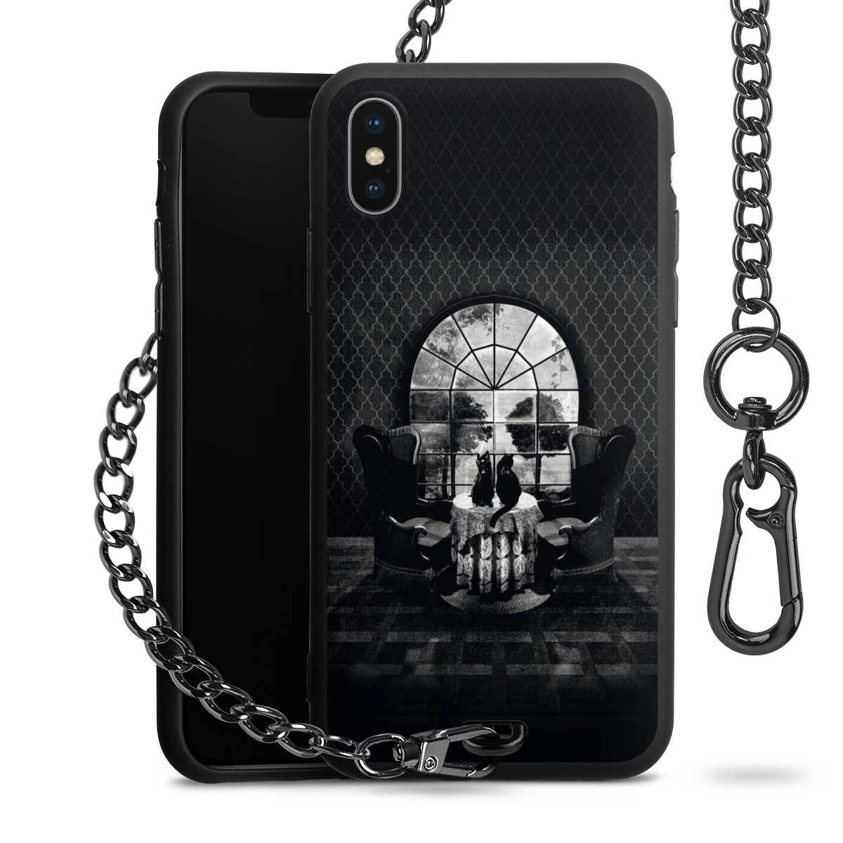 • Mattschwarze Handyhülle mit Metallkette