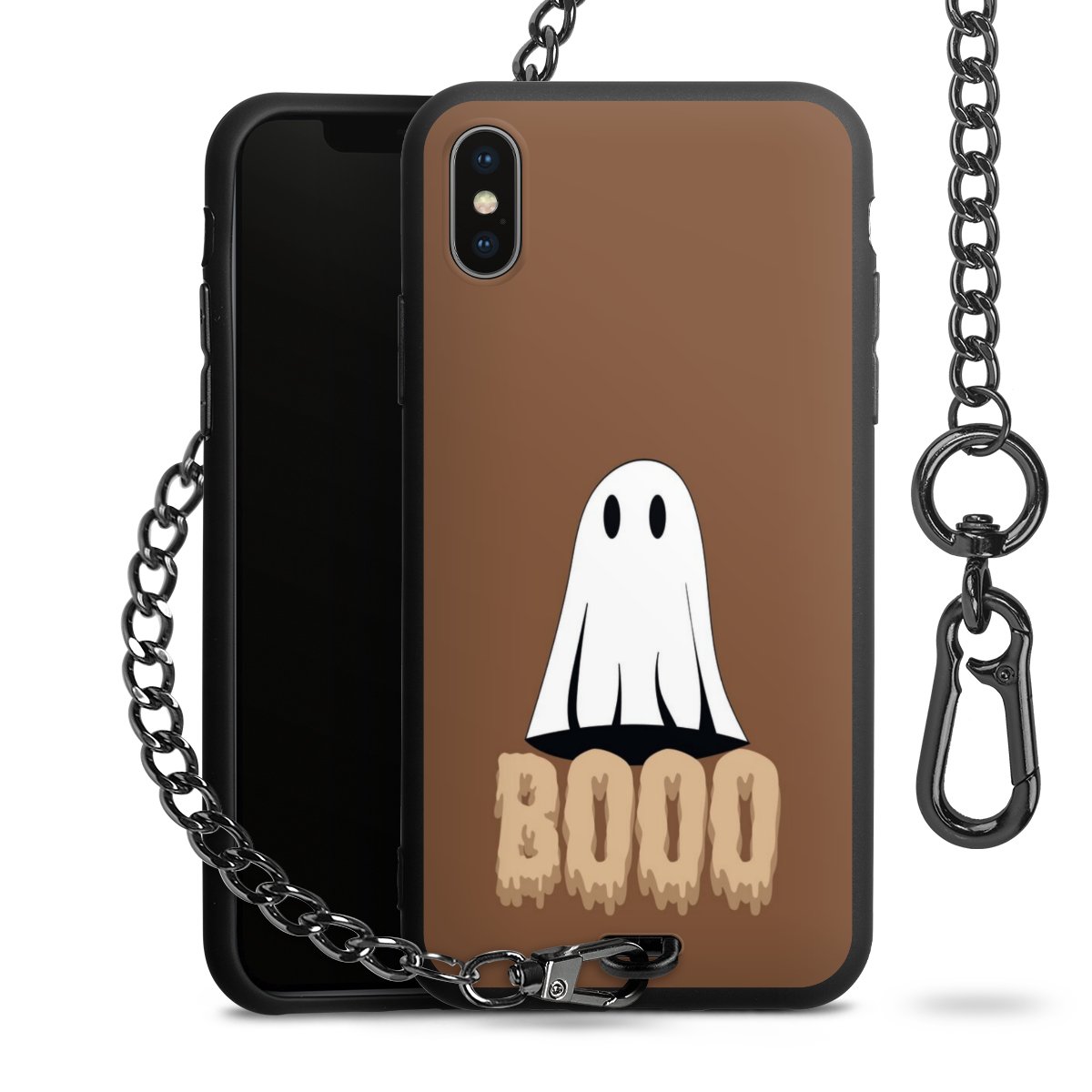 - Mattschwarze Handyhülle mit Metallkette
