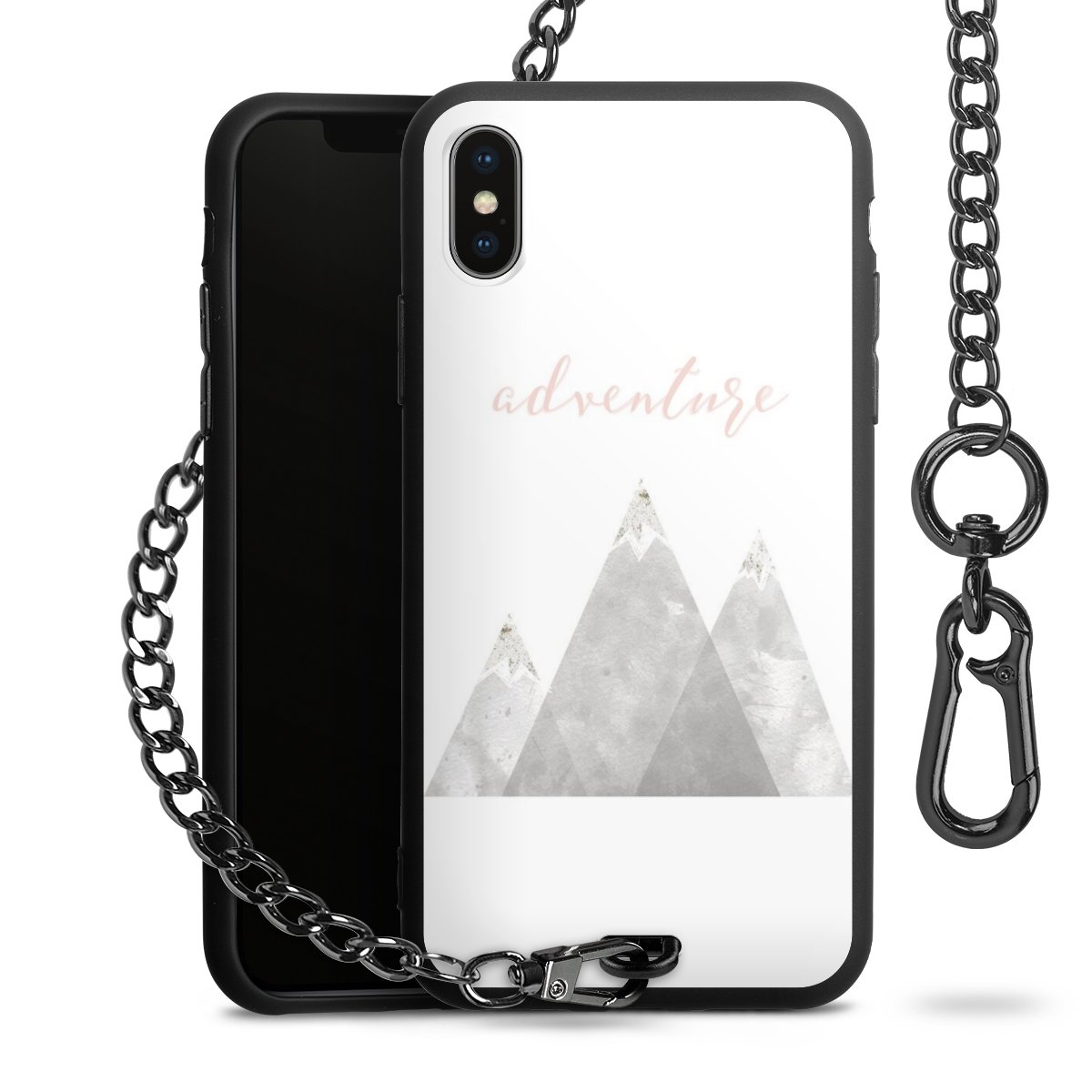 • Mattschwarze Handyhülle mit Metallkette