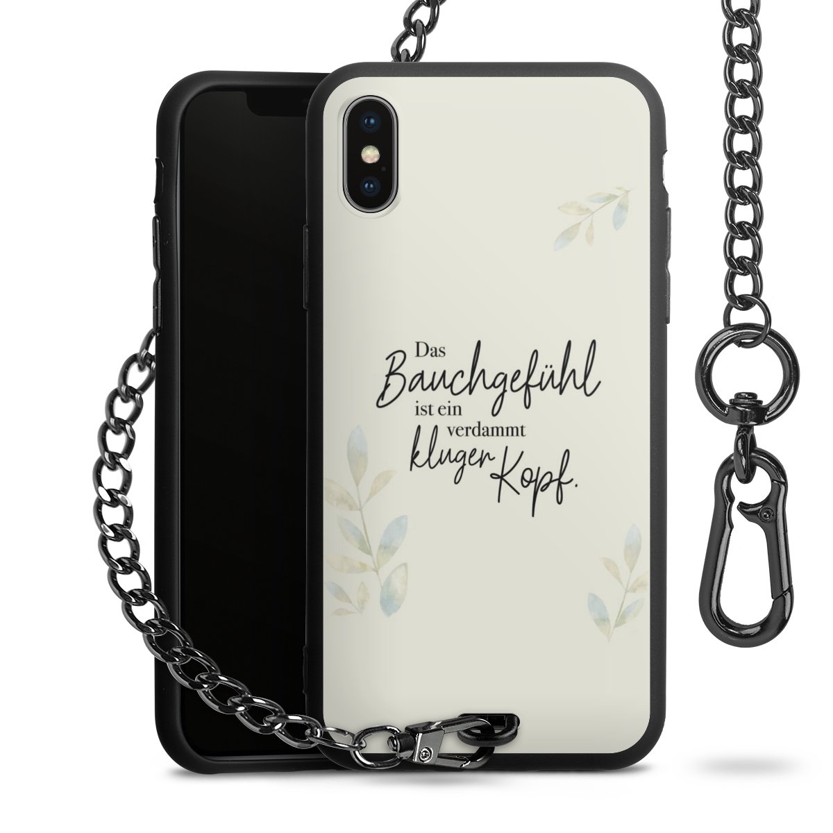 Die mattschwarze Silikon-Handyhülle besteht aus robustem TPU (thermoplastisches Polyurethan). Sie ist flexibel und schützt Dein Smartphone vor Stößen und Kratzern. Die Kette sowie der Karabinerhaken sind aus Metall in Gunmetal-Optik gefertigt. Für dieses Produkt kommen ausschließlich TÜV-geprüfte Materialien zum Einsatz.
