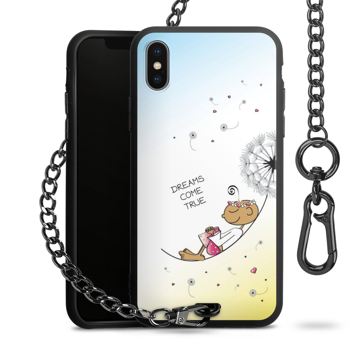 • Mattschwarze Handyhülle mit Metallkette