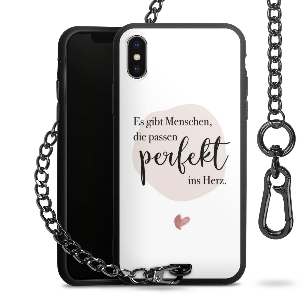 • Mattschwarze Handyhülle mit Metallkette