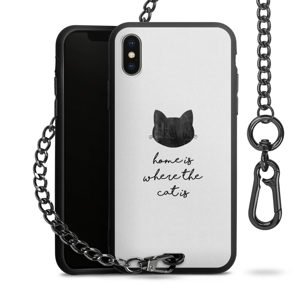 • Mattschwarze Handyhülle mit Metallkette