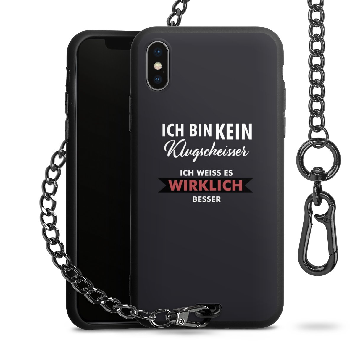 - Mattschwarze Handyhülle mit Metallkette