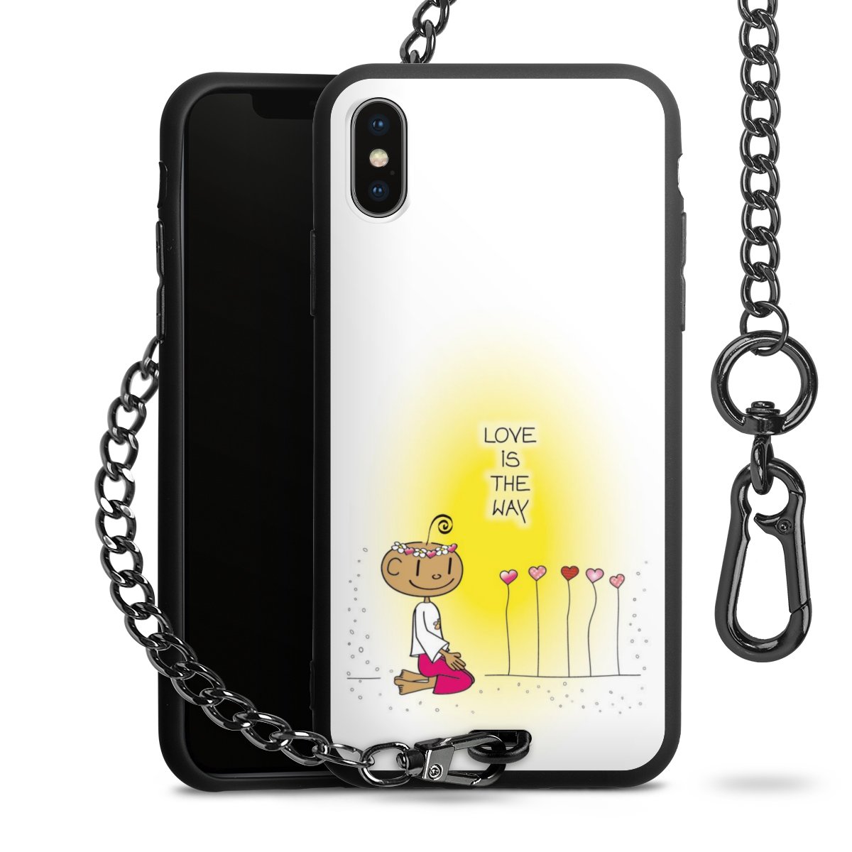 Die mattschwarze Silikon-Handyhülle besteht aus robustem TPU (thermoplastisches Polyurethan). Sie ist flexibel und schützt Dein Smartphone vor Stößen und Kratzern. Die Kette sowie der Karabinerhaken sind aus Metall in Gunmetal-Optik gefertigt. Für dieses Produkt kommen ausschließlich TÜV-geprüfte Materialien zum Einsatz.