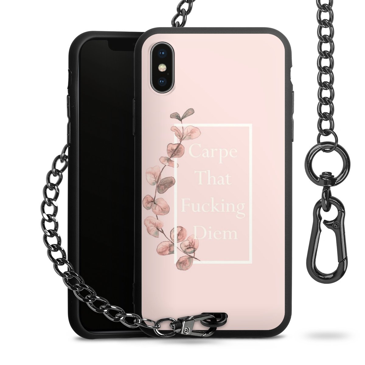 • Mattschwarze Handyhülle mit Metallkette