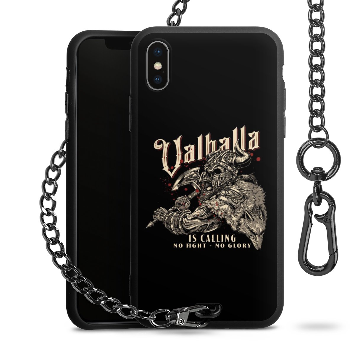 • Mattschwarze Handyhülle mit Metallkette